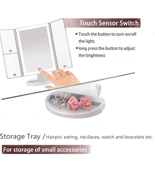Tri-fold LED Makeup Mirror with 2X/3X Magnification