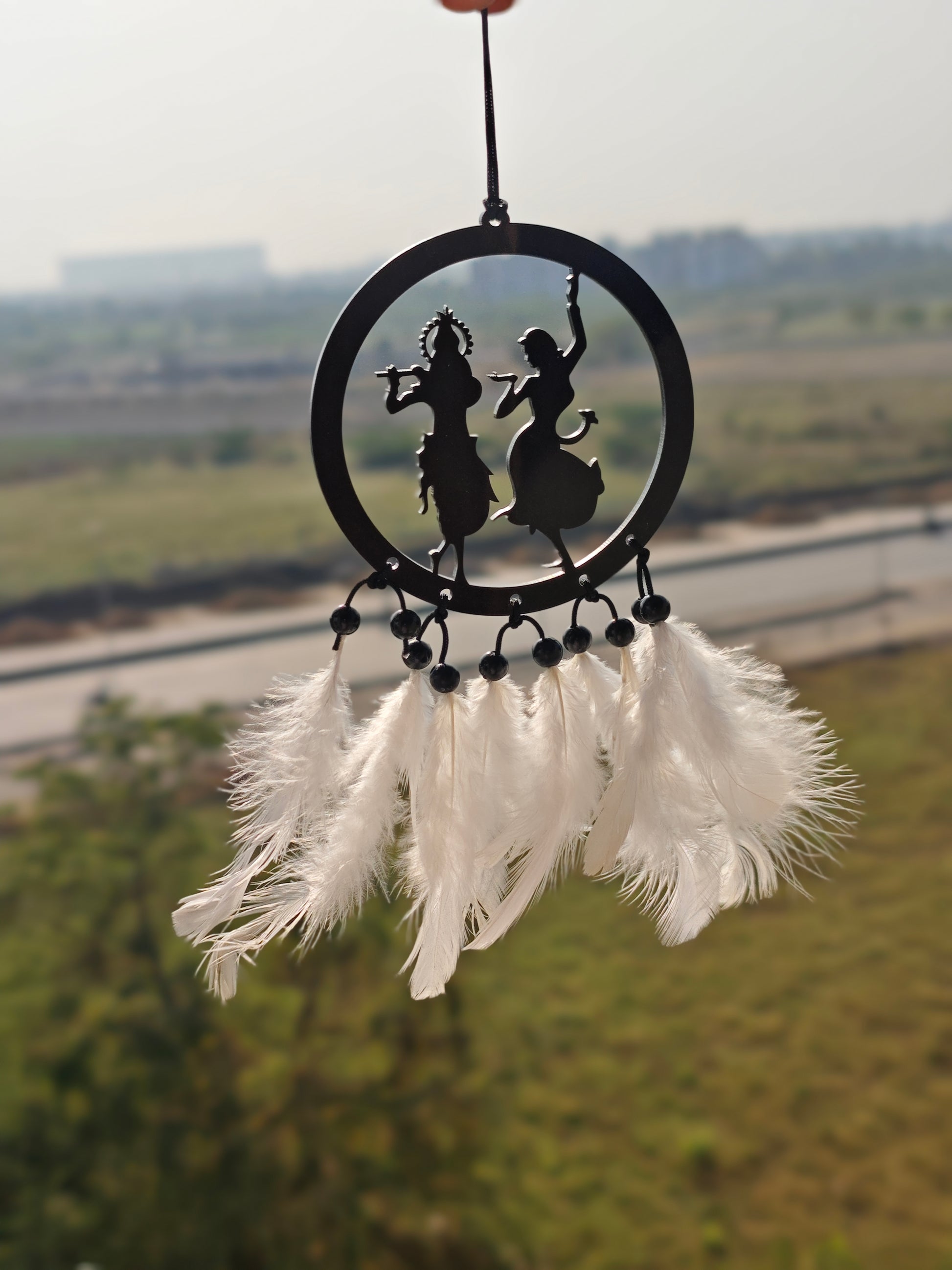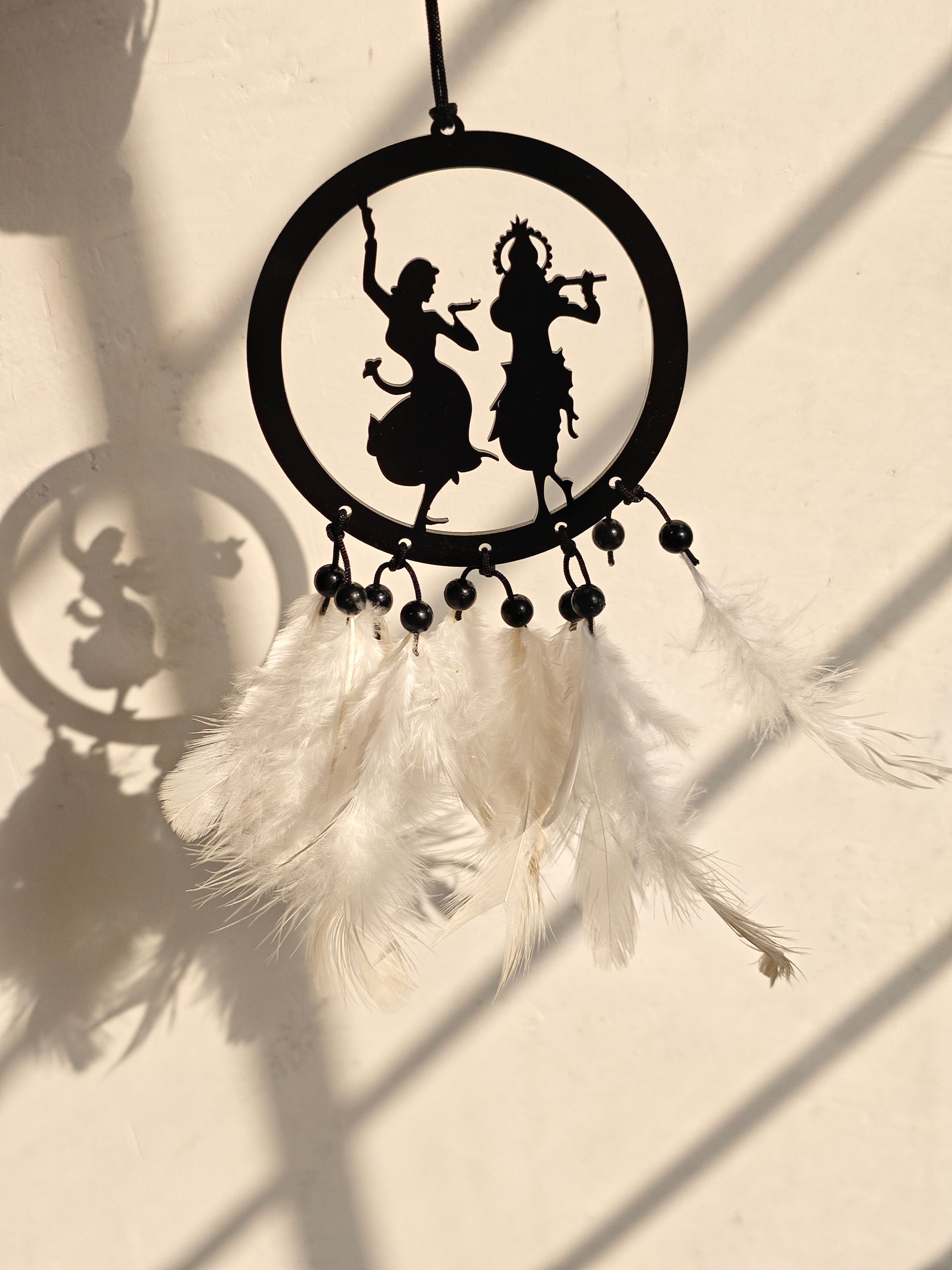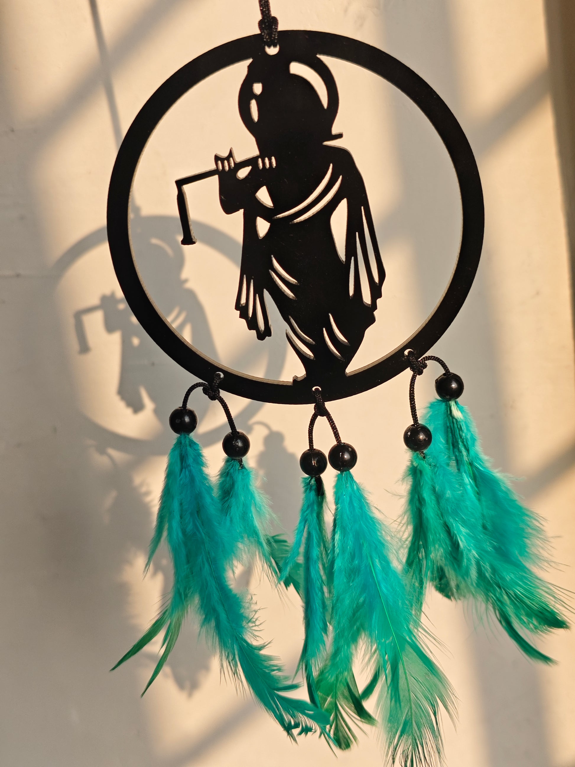 Incorporating Lord’s Symbols: The dream catcher can incorporate divine symbols such as an image of a deity, religious icons (like Lord Krishna, Lord Shiva, or Jesus Christ), or symbols associated with protection, faith, and blessings (such as the Om symbol, crosses, etc.).