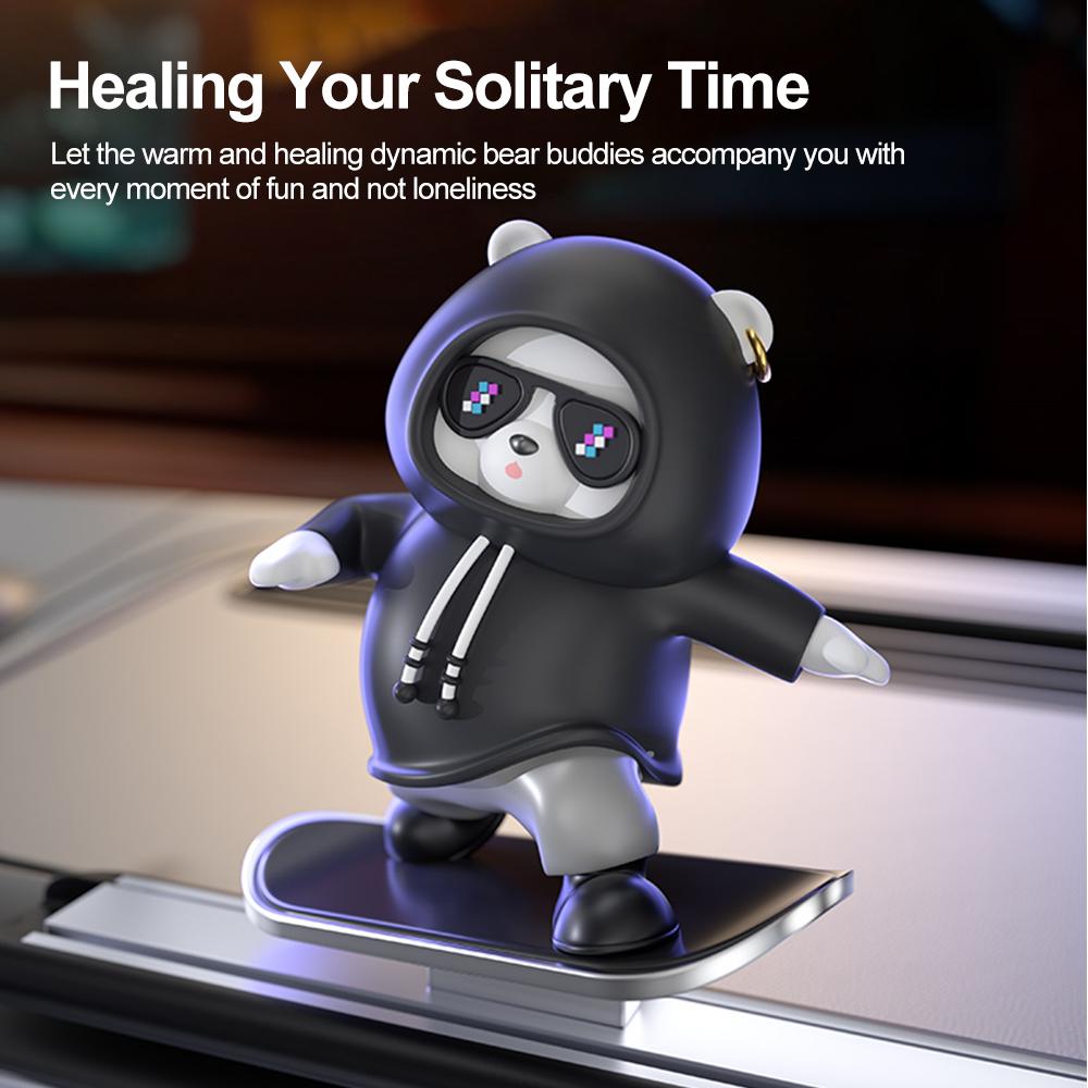 This panda ornament has a unique feature - movement. As your vehicle vibrates or accelerates, the panda effortlessly slides along its track, giving the appearance of a talented skateboarder in motion. This smooth and seamless action brings a lively and amusing touch to your dashboard.