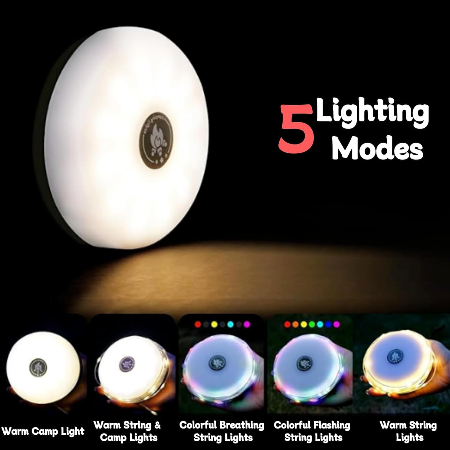 Enhance your camping experience with our Waterproof Portable Light! Featuring 8 unique lighting modes, from static to dynamic, warm to vibrant, create the perfect ambiance for any campsite. With easy switching, you can enjoy a colorful and dynamic camping adventure.