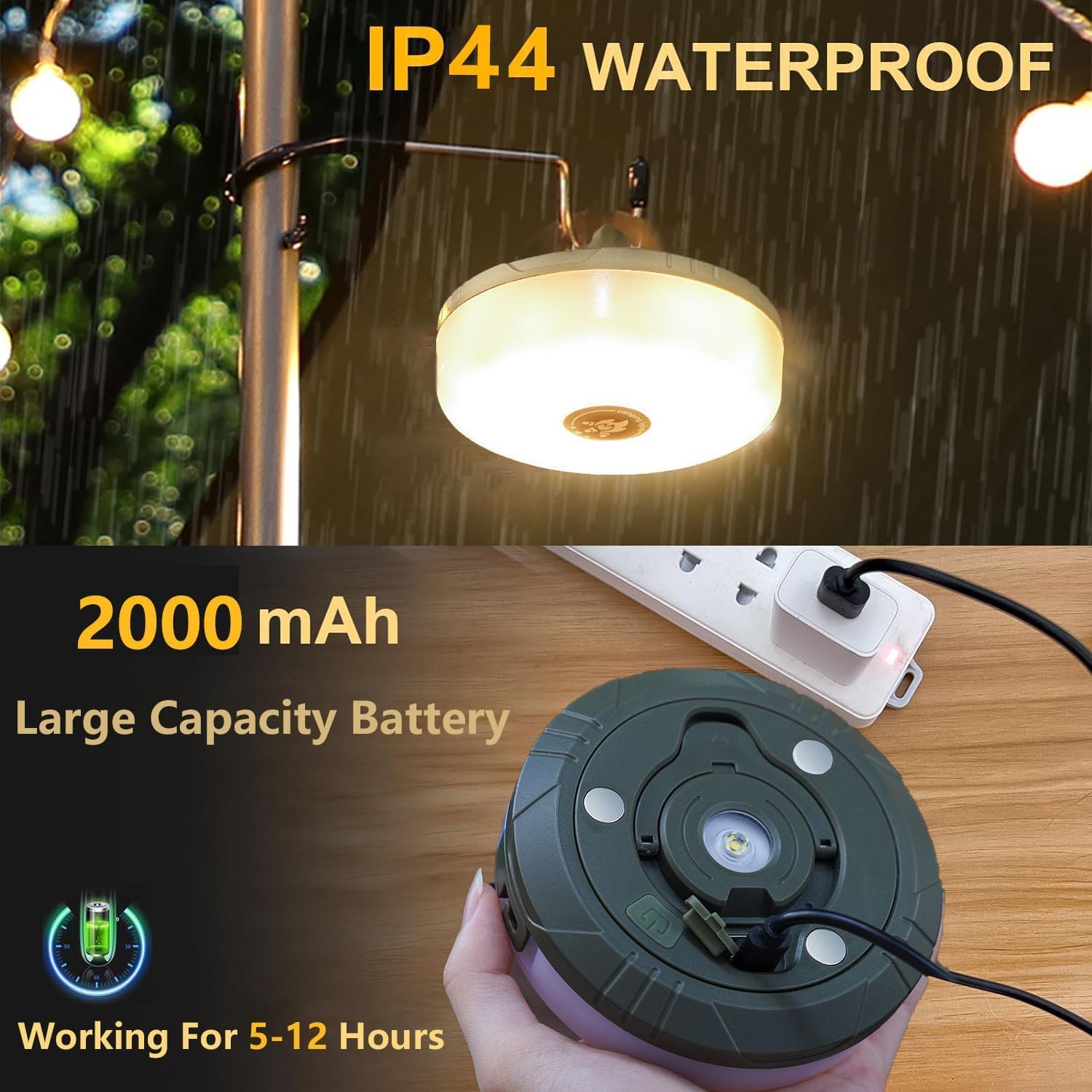 This Waterproof Portable Light is perfect for camping and outdoor activities. It features a built-in 5000mAh battery for long-lasting, stable lighting without the need for frequent recharging. Enjoy your adventures with peace and ease.