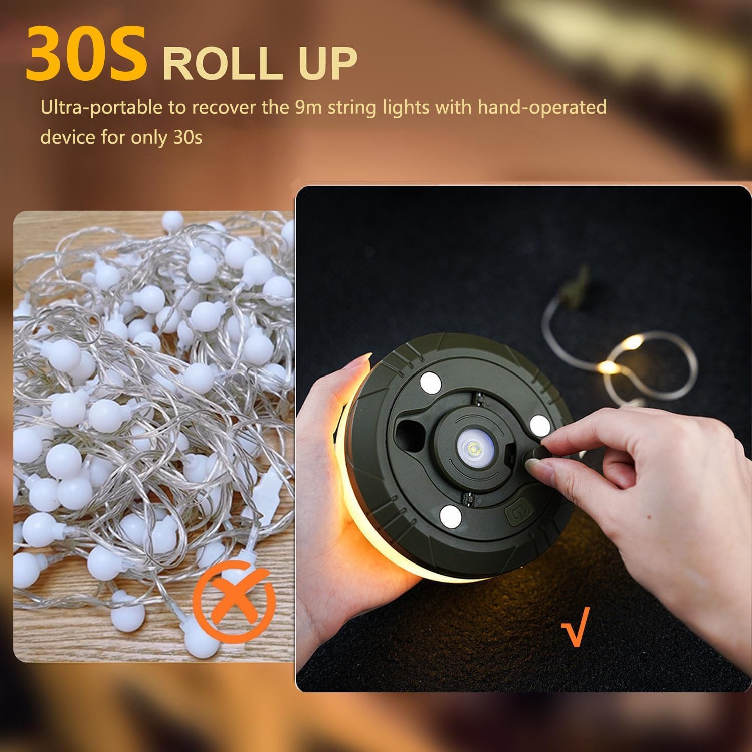 As an industry expert, experience the convenience of the Waterproof Portable Light. Flexible and lightweight, this 35 FT long light strip covers large camping areas with ease. With a compact design and included storage handle, this light can be easily hung anywhere, eliminating the hassle of power cords and traditional string lights. Retract in just 1-2 minutes and create a dreamy atmosphere for your next camping adventure.